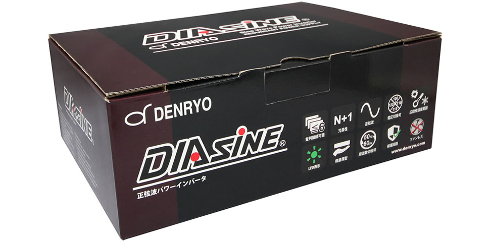 定格出力300Wクラスのインバータで、DIASINE®は世界最小の重量0.9kg、体積1.5Lを実現し、高さ44mm(1U)の薄型設計です。